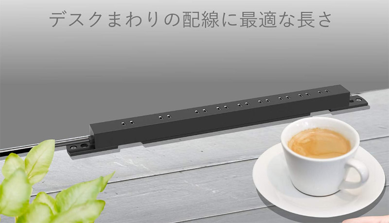 0.9mの短めコードなのでデスク上で使うとスッキリ収まります。 ぶっちゃけ、口数は少ないので自宅のメイン電源タップとしては物足りないです。 ただ、ノートPCの充電器を別に持ち歩かなくて済むようになったのは個人的にかなり大きかったです。