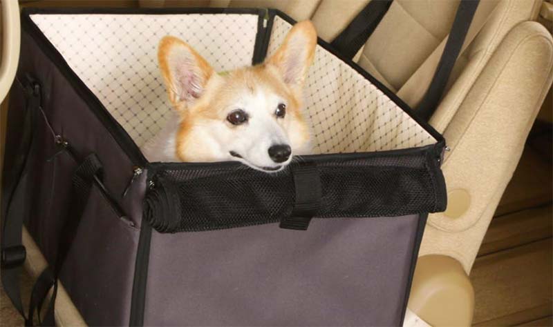 飛び出し防止ベルト付きで、やんちゃなワンちゃんが急に動いても安心。使わないときはコンパクトに折りたためるので、車のトランクに常備しておくこともできます。