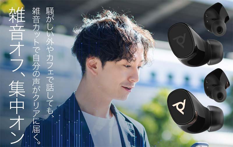 ビジネス向けオーディオ機器で定評のあるPolyのワイヤレスイヤホンです。AIノイズキャンセリングマイクを搭載しており、周囲の雑音を除去してクリアな音声を相手に届けてくれます。