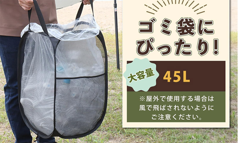 家族キャンプで使ってみたら、缶やペットボトルの分別がしやすく、撤収時もクルッと丸めて専用ケースに収納できます。これ一択で十分すぎるぞ!!と思えるほどアウトドア派には便利な1台でした。