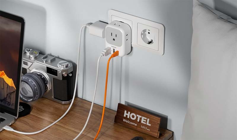 ACコンセント部分もしっかりした作りで、差し込んだときのぐらつきが少ないのが安心です。スマホ2台を同時に充電しながら、コンセントでカメラのバッテリーも充電できます。ホテルの部屋でコンセントが足りないときにも、このプラグ1つで複数機器の充電問題を解決できます。Amazonのレビューでも高評価が多く、リピート購入する旅行者も多い定番アイテムです。
