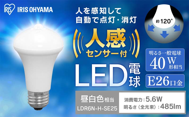 アイリスオーヤマの人感センサー付きLED電球は、手頃な価格で人感センサー機能を搭載したコスパの高い製品です。