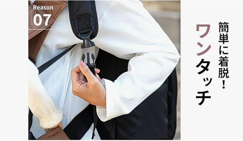 ベビーカーフック:リュックをベビーカーに掛けられるフック。 ショッピングモールなど歩く時間が長い場面で肩の負担を軽減できます