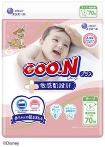 大王製紙のグーンプラスは、敏感肌の赤ちゃんのために開発されたやさしいSサイズおむつです。