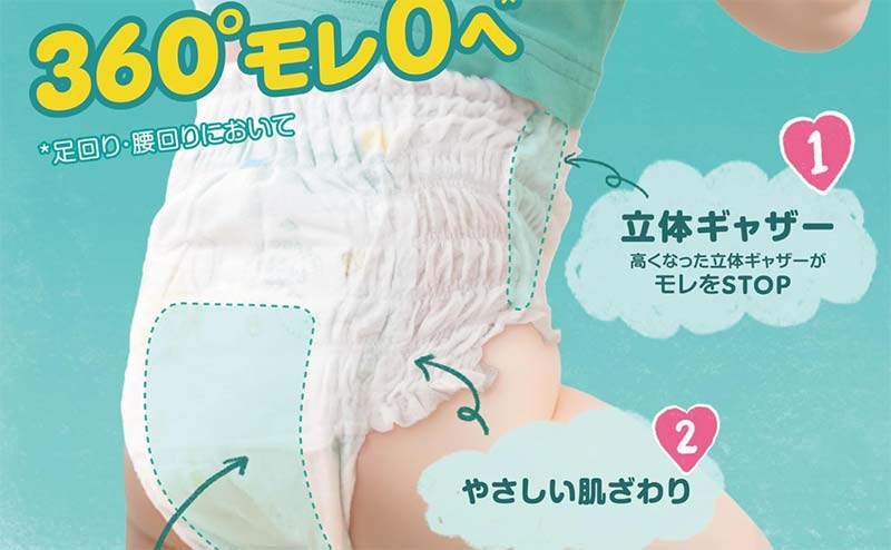 通気性にもこだわっていて、ムレを逃がす構造になっています。肌が敏感なお子さんにも使いやすく、おむつかぶれが心配な方にも安心の品質です。全国のドラッグストアやスーパーで手に入りやすいのもうれしいポイントです。
