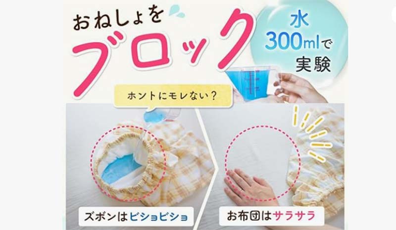 おねしょパンツを選ぶときに最も大切なのは、防水性能がしっかりしているかどうかです。 防水層が内蔵されたタイプなら、おしっこが外側に染み出さず布団を守ってくれます。