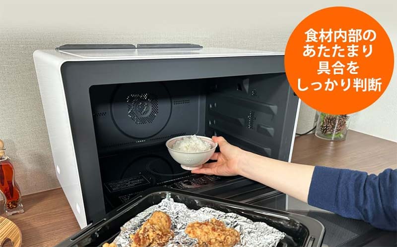 赤外線センサーが食材の温度を細かく感知するので、温めムラが少なく仕上がりが安定します。 オーブン機能もしっかりしていて、焼き菓子やケーキも美しく焼けます。