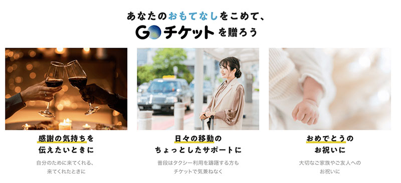 タクシーチケットをプレゼントしたい方にまずおすすめしたいのが、タクシーアプリ「GO」で使えるGOチケットの1,000円分です。