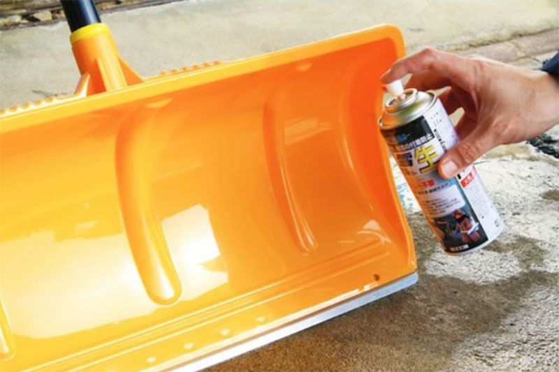 スプレーする前に、除雪道具の表面をきれいにすることが大切です。ゴミ、油分、水分、雪、サビ、カビなどを取り除き、しっかり清掃してください。汚れが残っていると塗膜の密着が悪くなり、効果が落ちてしまいます。